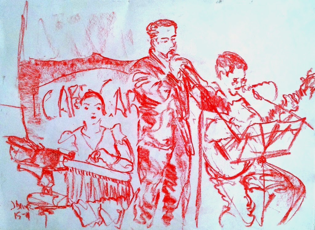 Con nuestro buen amigo Bruno cantando bellos temas y acompañado por el dueto Dos generaciones, en Café Cardoni.